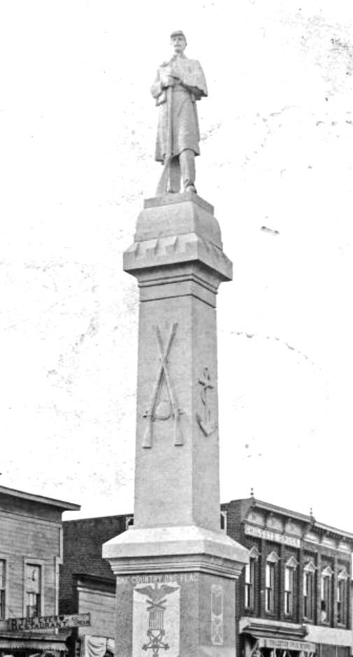 VETERAN’S MONUMENT - In 1911 Walter Slaughter Post Grand Army of the Republic sponsored efforts to erect Edgerton’s veterans’ monument, affectionately known as “Clem.” On May 30, 1912, an American flag was unfurled, revealing the magnificent monument to a large crowd. As larger, faster motorized vehicles replaced horse-drawn conveyances, Clem’s position in Edgerton’s main intersection became less and less desirable. In 1972 the monument was relocated to the town hall’s west lawn.