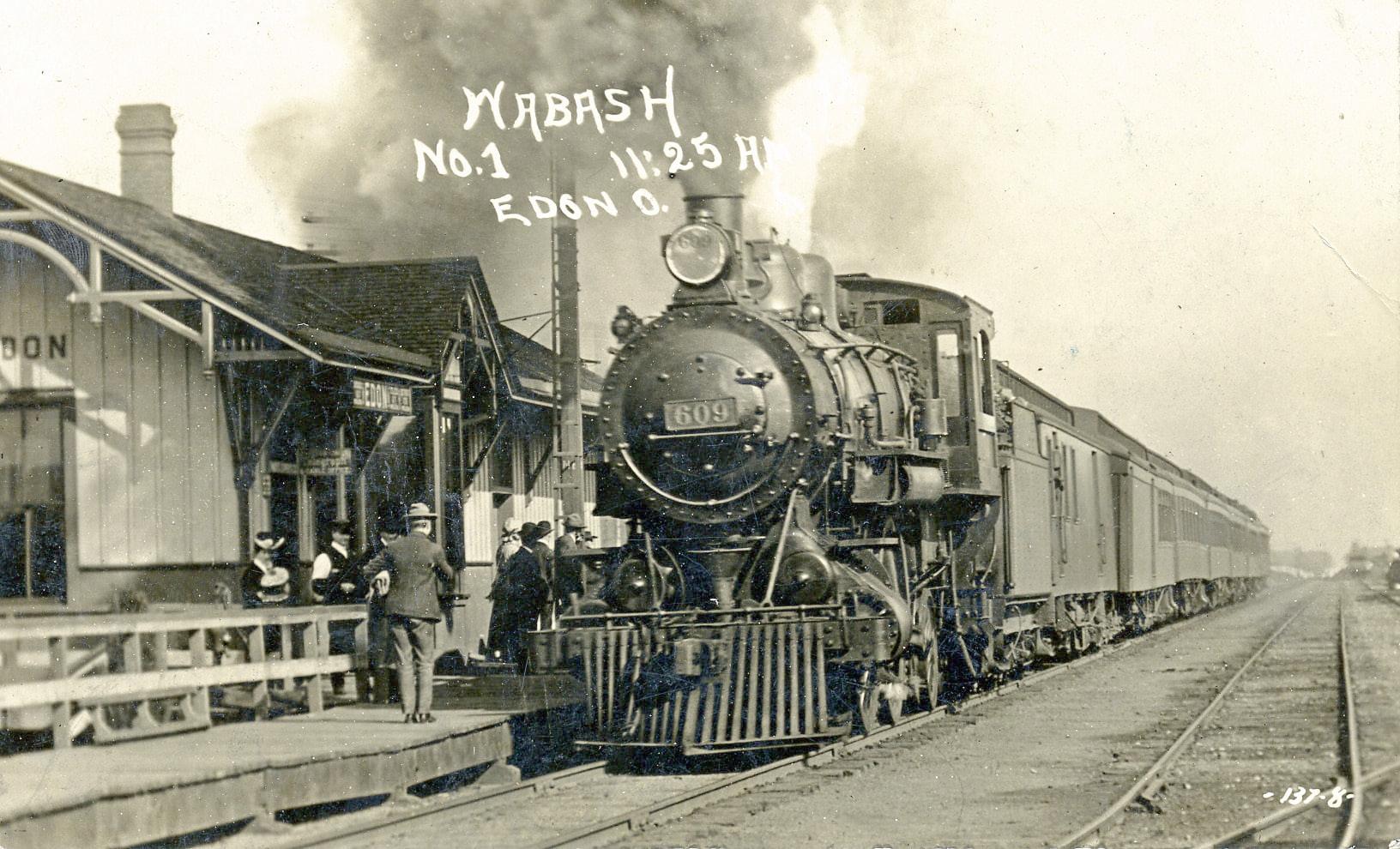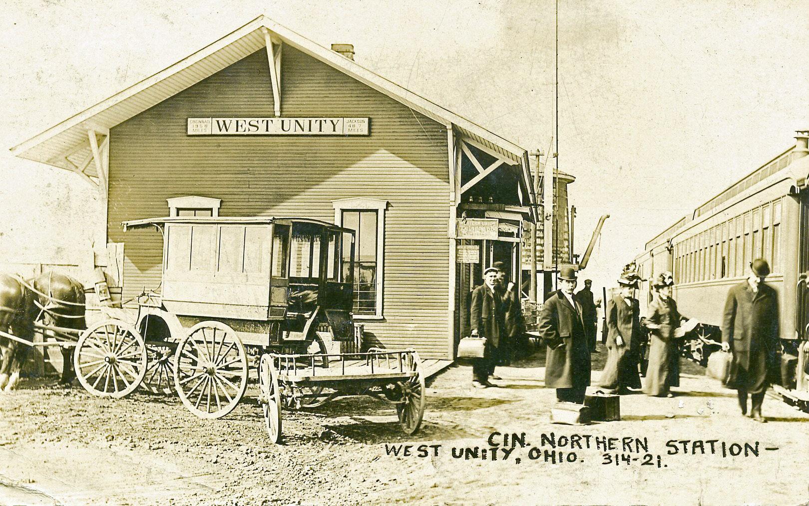 EARLY RAILROAD - Alvordton Cincinnati, Jackson & Mackinaw depot circa 1910 .