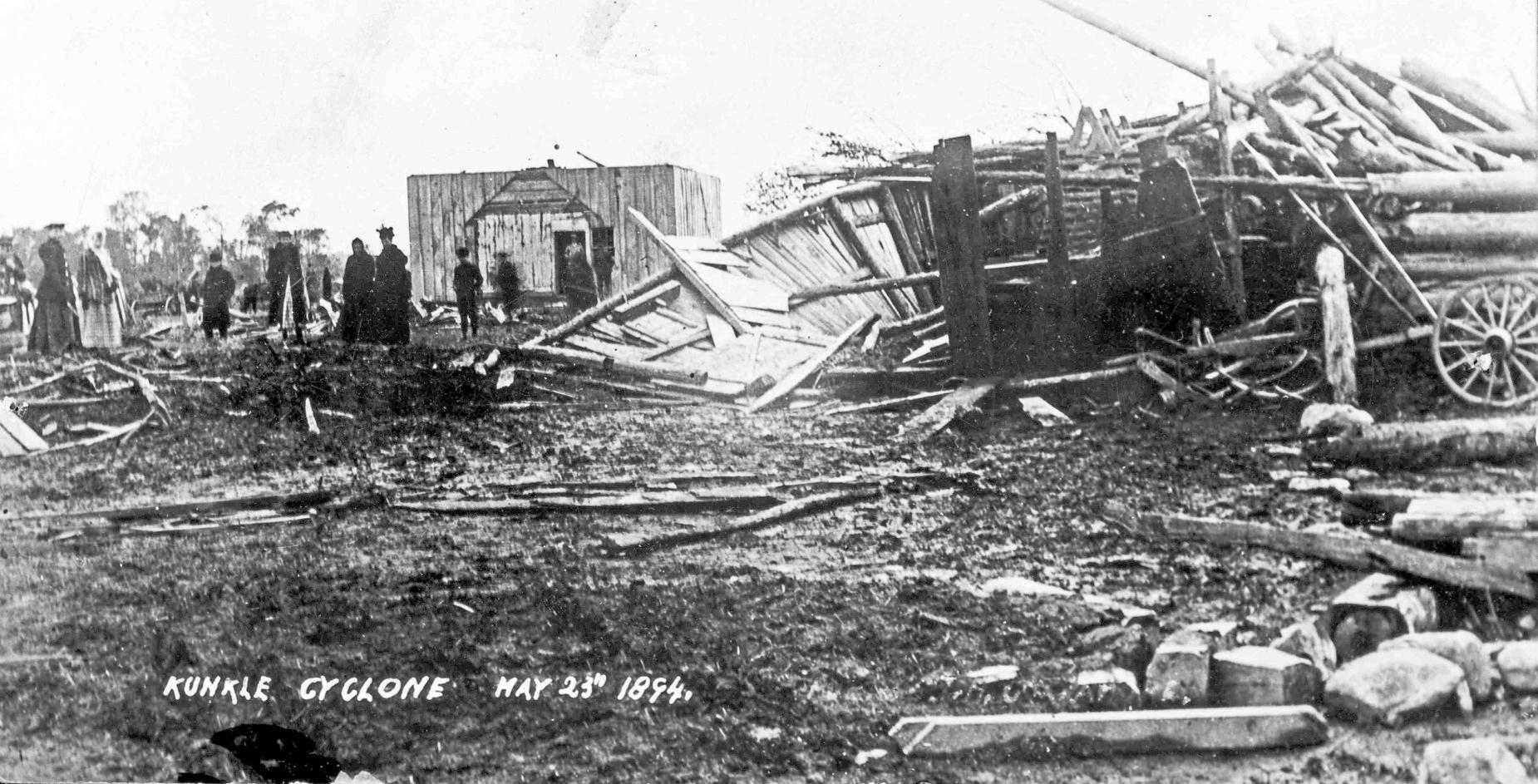 KUNKLE TORNADO - On May 17, 1894, a tornado south of Kunkle injured several local residents and killed Daniel Barrett, 75, Margaret Barrett, 77, George Oxenger, 32, and Myrtie Belle Daso, 8.