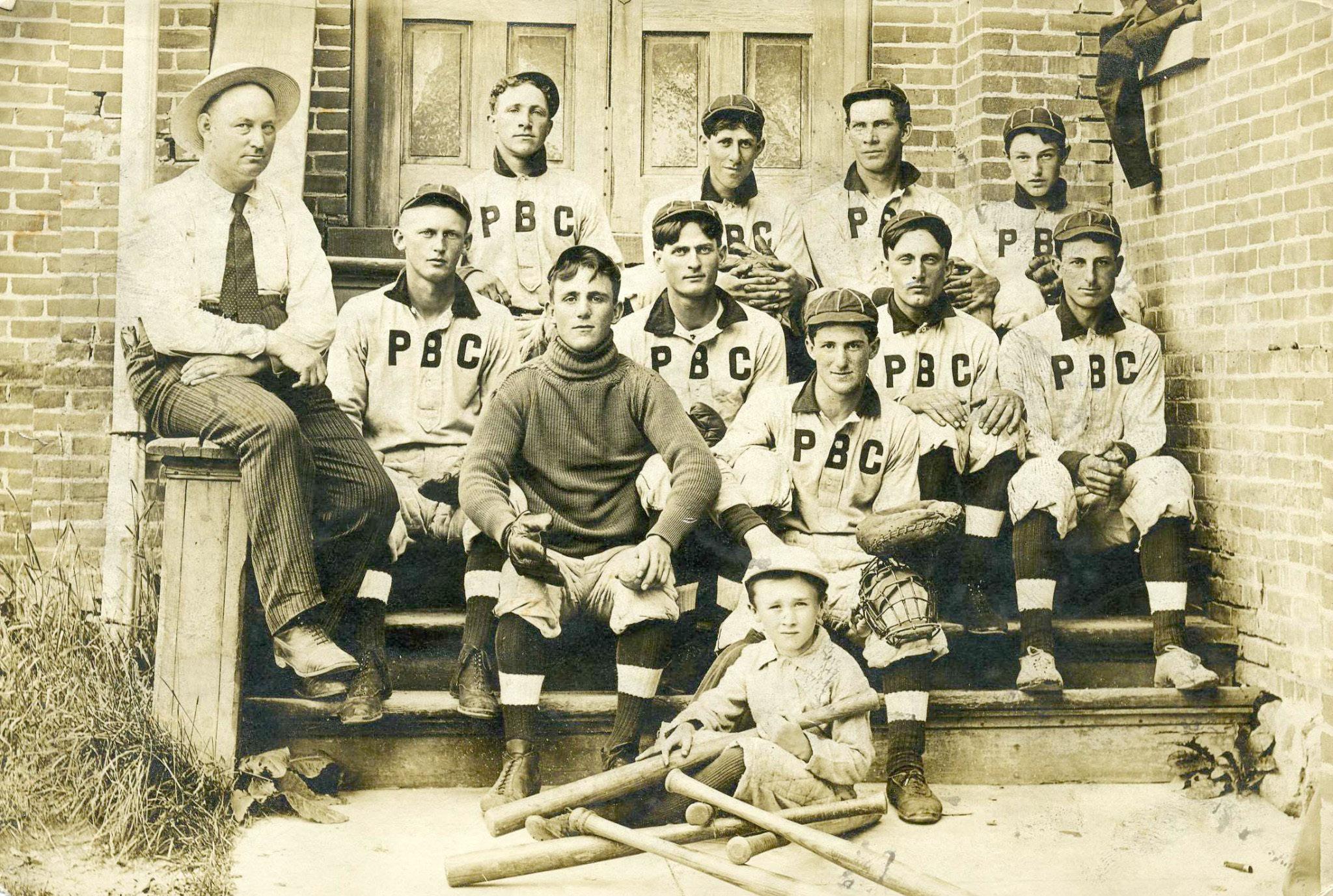 EARLY BASEBALL - The 1904 Northwest Township baseball team poses at the Grange Fairground on Ohio 49 north of Cooney. From left to right are (first row) Bill Speaker and Ralph Ricketts; (second row) Thurman Walker, Henry Ricketts, Warren Ricketts, Ross Stickney, Joe Hershey, Bill Welch, Nate Townsend, Howard Carl, and Hurd Speaker. (WCPL Photographic Archives.)