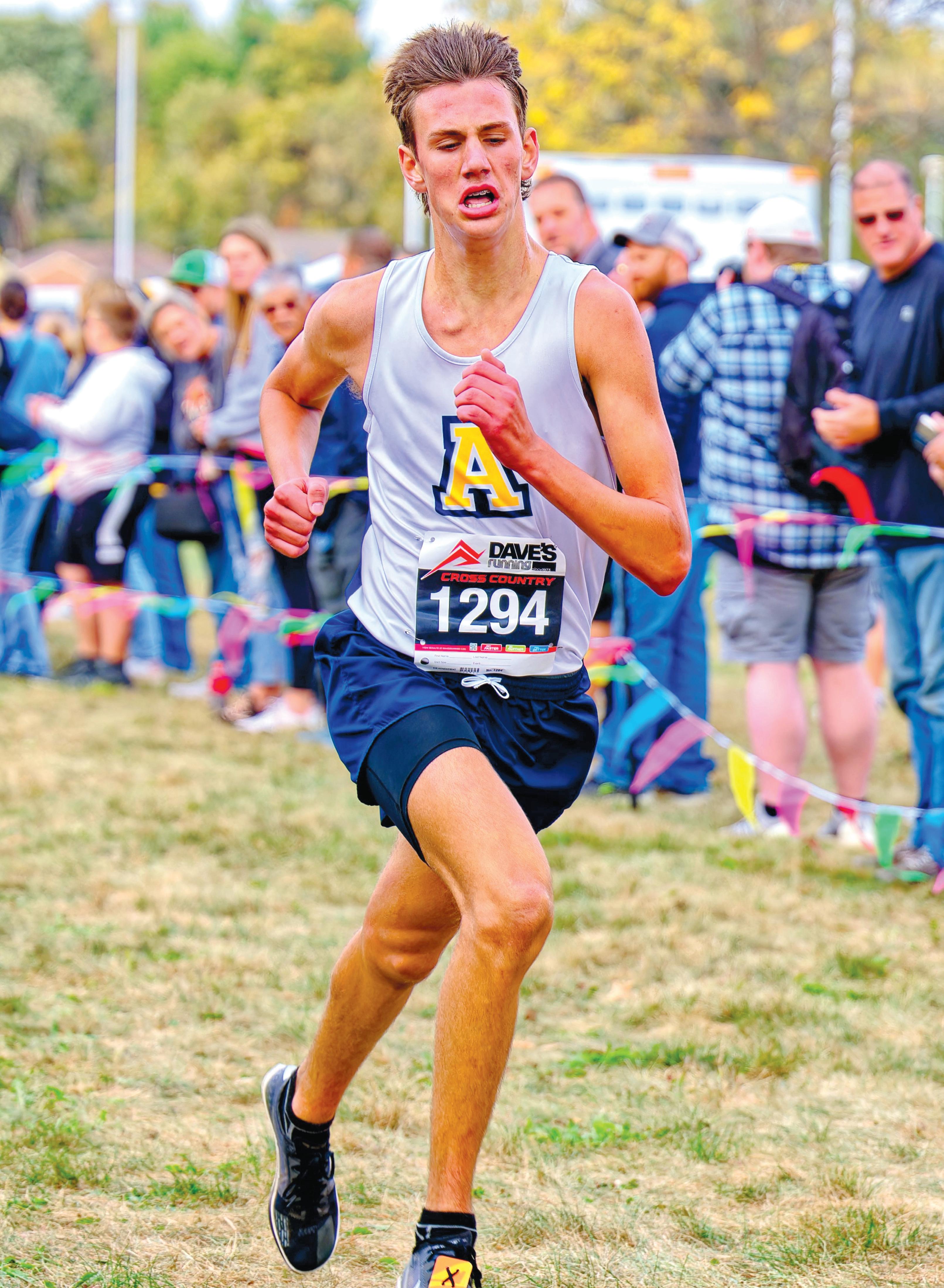 AREA RUNNERS IN TOP 10: 1. Jude Hudson (A) 16:21; 2. Daniel Sintobin (D) 16:26; 3. Konnor Hawkins (D) 16:28; 5. Braydon Buchanon (B) 16:38; 6. Josiah Cummins (B) 16:52; 7. Clay
