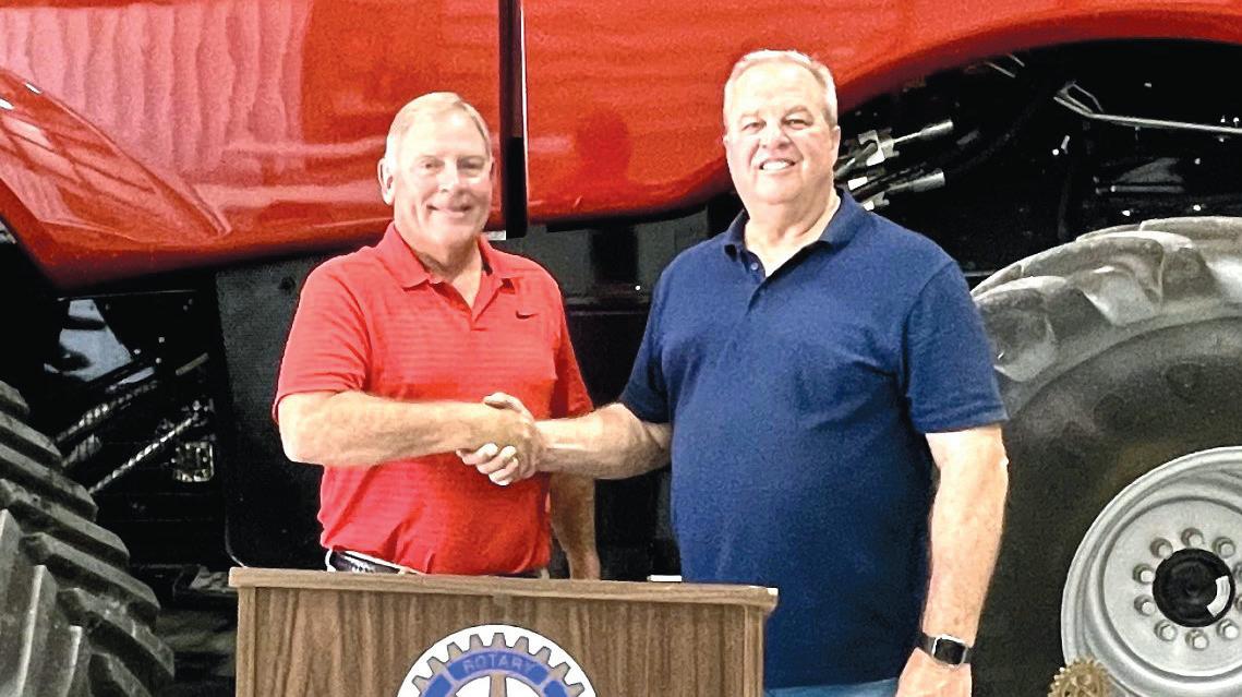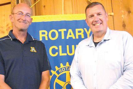 COACHING EXPERIENCES … Archbold High School boys soccer coach Stewart Rodger (left) shared some of his coaching philosophy with Archbold Rotarians at their September 27 meeting at The Barn Restaurant. The program was arranged by Mark Hagans.