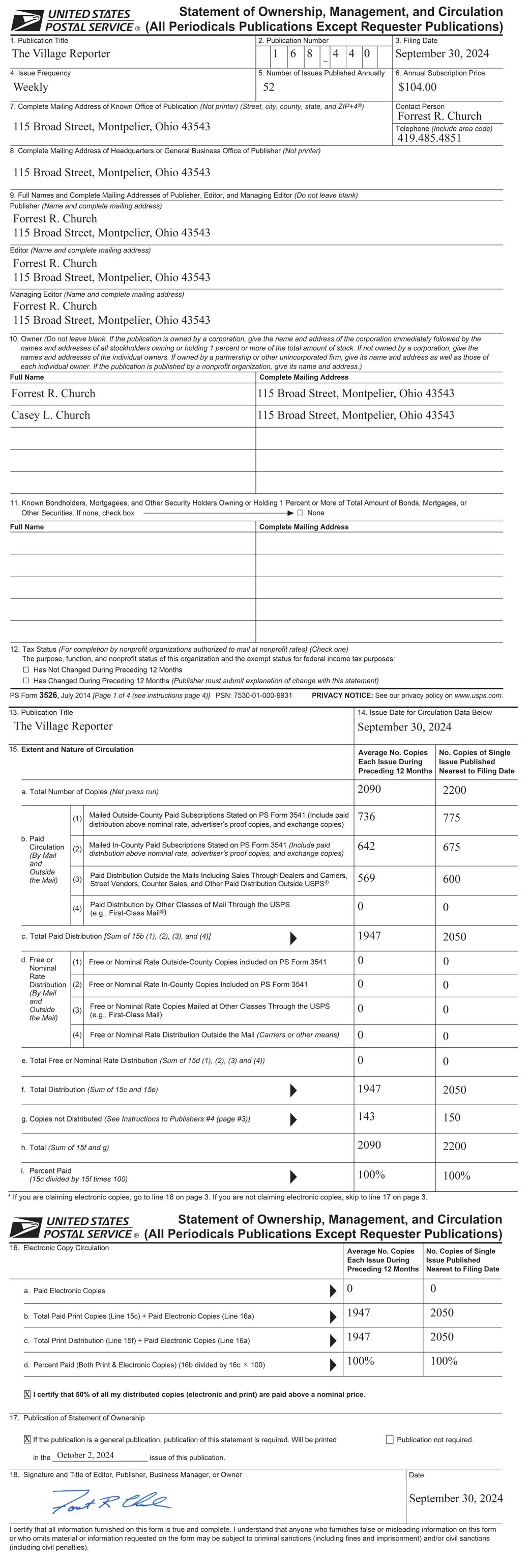 •The Village Reporter holds the right to refuse service and/or determine information posted within our publication.
