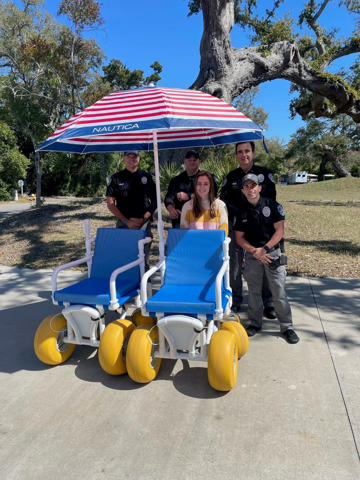 Beach Access for Handicapped Individuals: An ADA-compliant access is located at Beach Access 24A. Designated parking is available near Muscadine Wynd and South Bald Head Wynd. for that access. The Village has a beach wheelchair which is available on a first come, first served basis. Contact the Public Safety Department at 910-457-5252 to check availability and arrange use (more info online HERE).