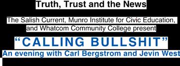 The Salish Current and the Munro Institute are pleased to welcome the co-authors of Calling Bullshit: The Art of Skepticism in a Data-Driven World, for a discussion on the importance of truth in the news. How do YOU decide what is true? With an avalanche of distortion coming from every direction, how can we sort out what is true and what is misleading, false or “fake news”? See page 48 for details.
