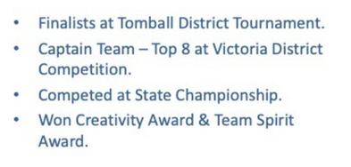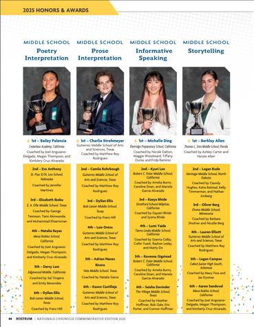 We came home with: Several Octafinalists, Quarterfinalists, and Semifinalists TEN National Finalists (Top 6 in the country!) And THREE individual NATIONAL CHAMPIONS! Mrs. Huffman was awarded her 2 Diamond Award for coaching! nd