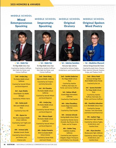 The Village Middle School Speech and Debate Team competed at the National Speech and Debate Tournament in Des Moines, IA on June 17-21, celebrating the NSDA organization's 100th Anniversary.....and WOW, do we have some incredible news to share!