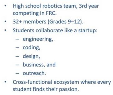 Our 8th grade FTC team participated in a scrimmage alongside high school teams. They successfully built a pushbot, formed alliances, and had a great time learning and collaborating with their peers. It was a fantastic opportunity for growth and teamwork!