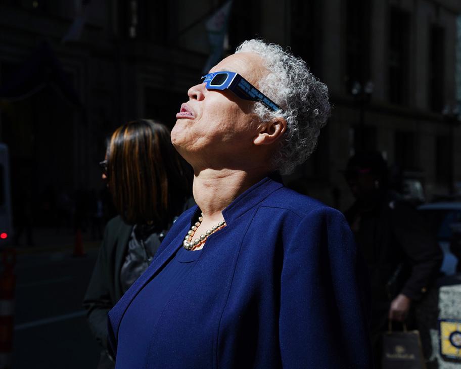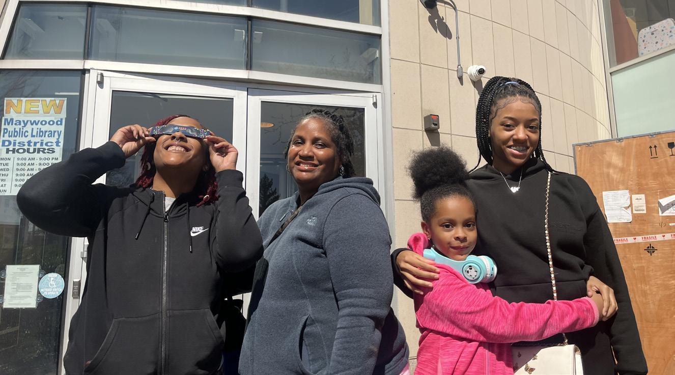 Peggy Taylor traveled from Chicago to Maywood just to get a better look of the partial eclipse and to watch the rare solar event with her daughter, Rhiannon Taylor, a Maywood Public Library employee.