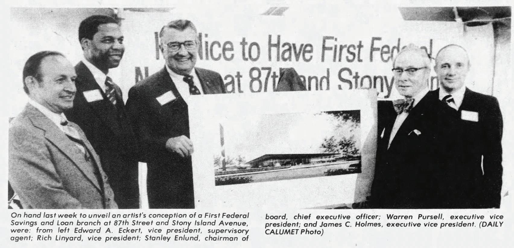 First Federal tasked Richard with overseeing the opening of the “first savings and loan branch in a minority area by a major financial institution,” the Daily Calumet reported in 1977. The Chicago Tribune predicted that the roughly $2 million branch office at 87th Street and Stony Island Avenue on Chicago’s South Side, an inner-city area with a rising middle class, “could have profound implications for other financial institutions that are eyeing similar areas.”