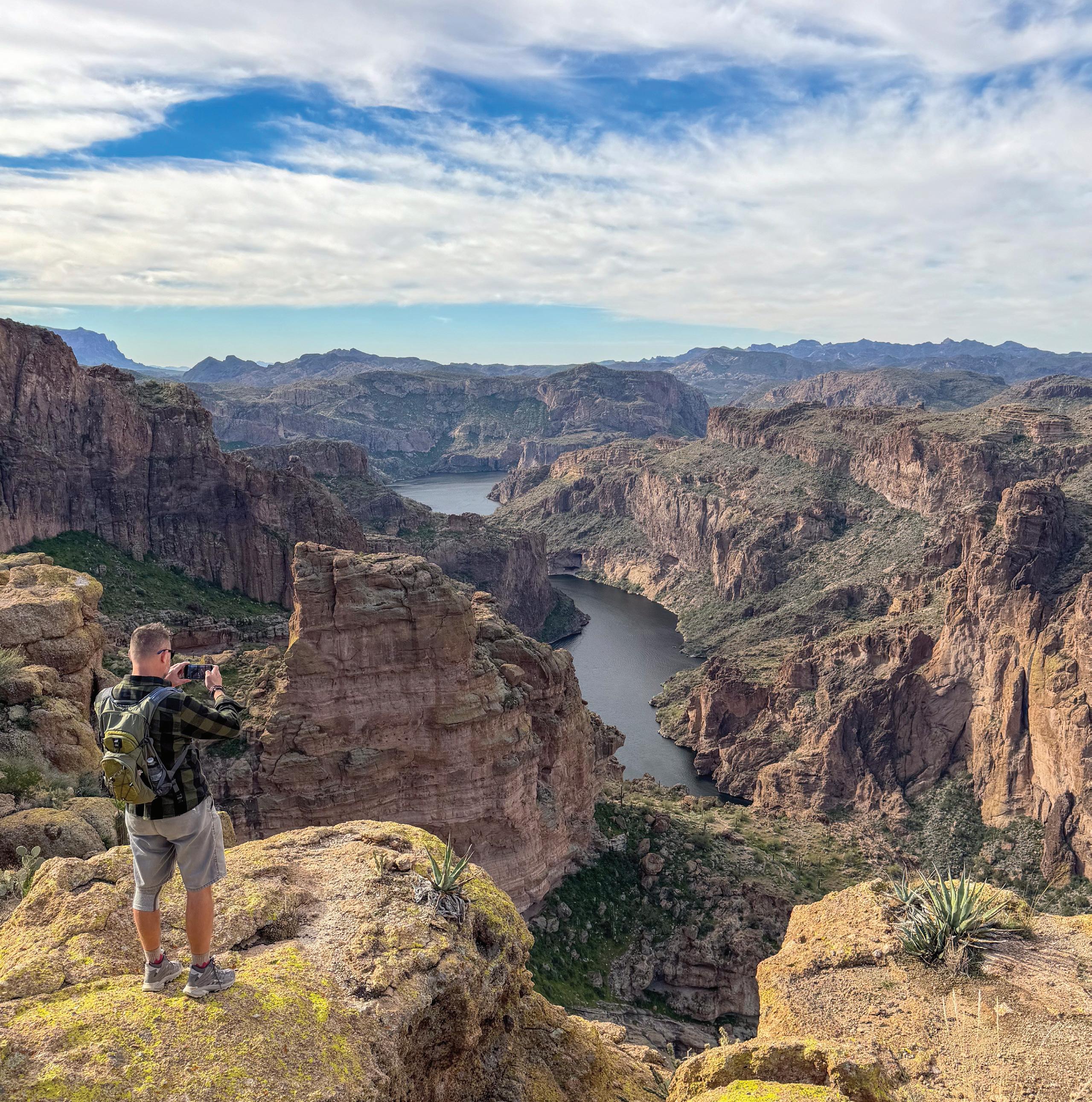 The Hieroglyphic Trail offers a 3-mile out and back hike through Hieroglyphic Canyon in the Superstition Wilderness. In spring, you'll see vibrant wildflowers along this 574ft elevation gain. Along the way to the rocky canyon, you’ll come across pools of water that last all year. At the end, the trail brings you to ancient petroglyphs—carvings thought to have been made by the Hohokam people around 1,500 years ago.