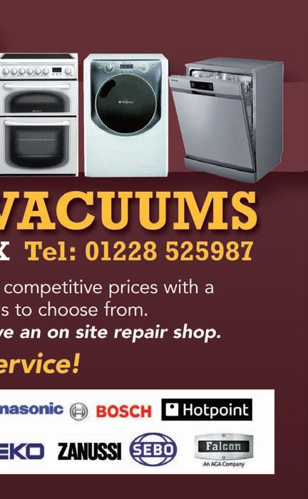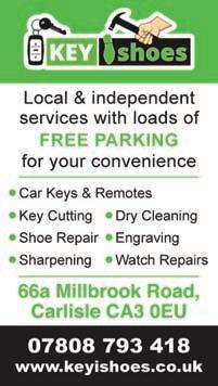 New Dentures Direct FREE Consultations Economical to Premium Range Dentures All work carried out by a Clinical Dental Technician in our Denture Clinic Tel: 01228 529128 Devonshire House Denture Solutions 51 Spencer Street, Carlisle, Cumbria CA1 1BB www.devonshirehouselab.co.uk Fully Accredited Worcester Bosch Installer Up to 10 years Guarantee boiler and heating installations • gas services plumbing services • electrical ser vice s bathrooms • renewable energy installations gas & electrical safety inspections & testing Tel: Scotby 01228 512536 Mobile: 07771 513 674 Email: mdwelton@hotmail.co.uk