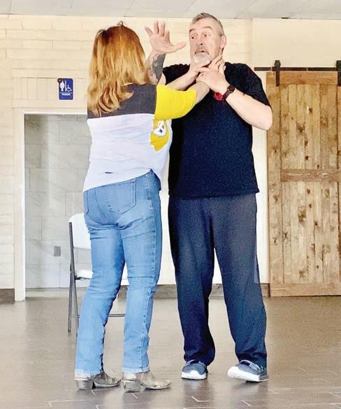 Mike Patke teaches a student how to escape an attacker at the Escape To Gain Safety class Saturday, May 13 at the Anza Community Hall. Anza Valley Outlook/Amy Procop photo