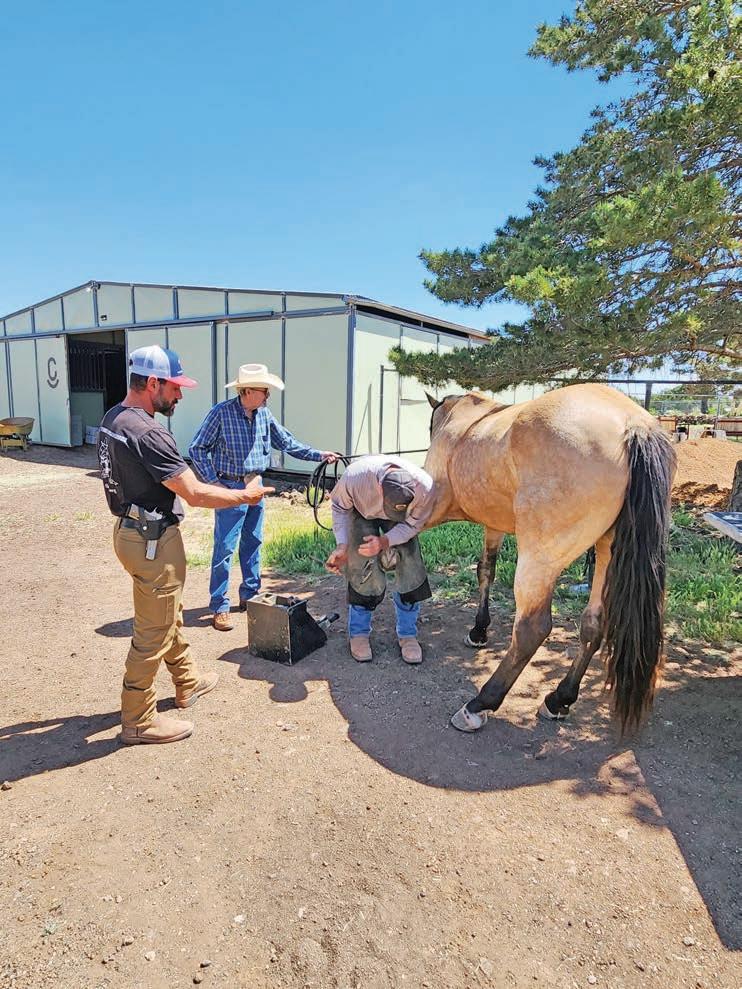 Steve Silkotch works on Buck’s front hoof during Matt Perella’s stop in Show Low, Arizona. Anza Valley Outlook/Penny Hayden-Lapp photos