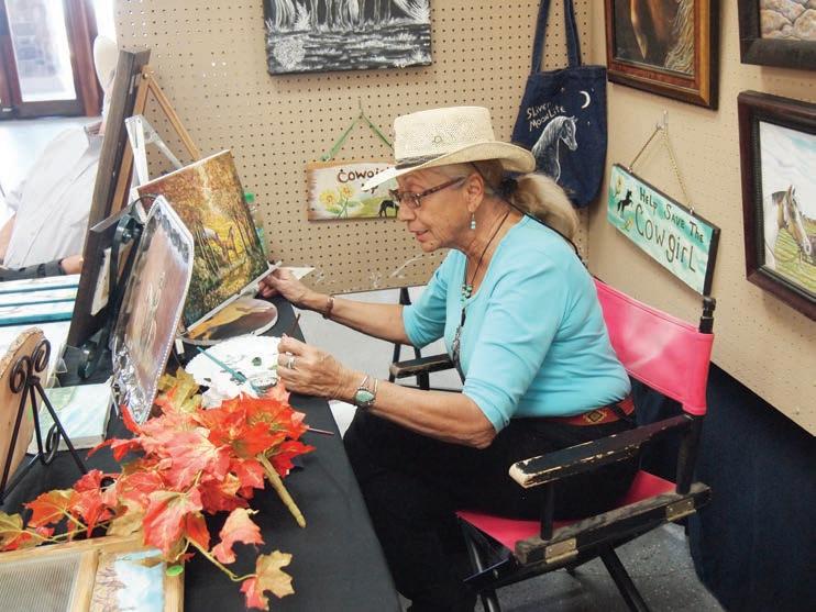 Artist Rosie Grindle paints during a Ribbonwood Art Guild show at Emerald Creek Winery in 2021.