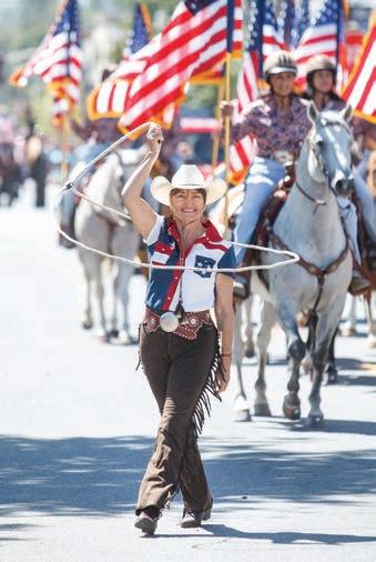 Temecula Cowgirls member Judy Taylor performs with a lasso while marching during the 2022 4th of July Parade in Temecula.