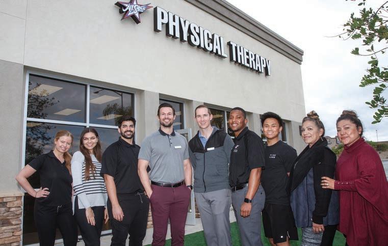 At All Star Physical Therapy, we treat all of our patients with utmost care by offering individual attention, one-on-one focus, and customized treatment plans. www.AllStarPhysicalTherapy.com LAKE ELSINORE 425 Diamond Drive, Ste 101 ............................. 951-674-9515 CORONA 2815 Main Street, Ste 205 951-475-1219 FALLBROOK 577 Elder Street, Ste I 760-723-2687 VISTA 1976 Hacienda Drive 760-295-4175 ESCONDIDO 215 S. Hickory Street, Ste 112 .......................... 760-737-8460 RAMONA 1338 Main Street 760-789-1400 APPLE VALLEY 16008 Kamana Road, Ste 200 760-810-7767 MIRAMAR 8901 Activity Road, Ste D .................................. 619-535-6900 We are the Fastest Growing Physical Therapy Operation in California! A legacy of excellence. TEMECULA 29645 Rancho California Road, Ste 234 951-506-3001 31515 Rancho Pueblo Road, Ste 101 951-303-1414 26799 Jefferson Ave, Ste 202 951-506-1405 MURRIETA 39755 Murrieta Hot Springs Rd, Ste F 120 951-894-1600 25136 Hancok Ave, Suite D 951-696-7474 24671 Monroe Ave, Bldg C, Ste 101 ................. 951-677-4105 MENIFEE 29798 Haun Road (Hope Building) 951-679-8500 30141 Antelope Road, Ste A.............................. 951-723-8100 HEMET 3989 W. Stetson Ave., Ste 105 951-652-3334 SAN JACINTO 1191 N. State St, Ste D 951-654-2440 WILDOMAR 36243 Inland Valley Drive, Ste 110 .................... 951-677-7221 30 LOCATIONS TO SERVE YOU Physical Therapy • Occupational/Hand Therapy • Speech-Language Pathology • Sports Medicine