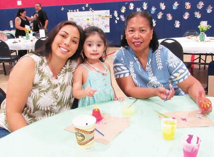 Crystal Maxcy, left, watches daughter Eshash Shuullaw Maxcy, 3, paint flowerpots with her grandmother, Joy Gates.
