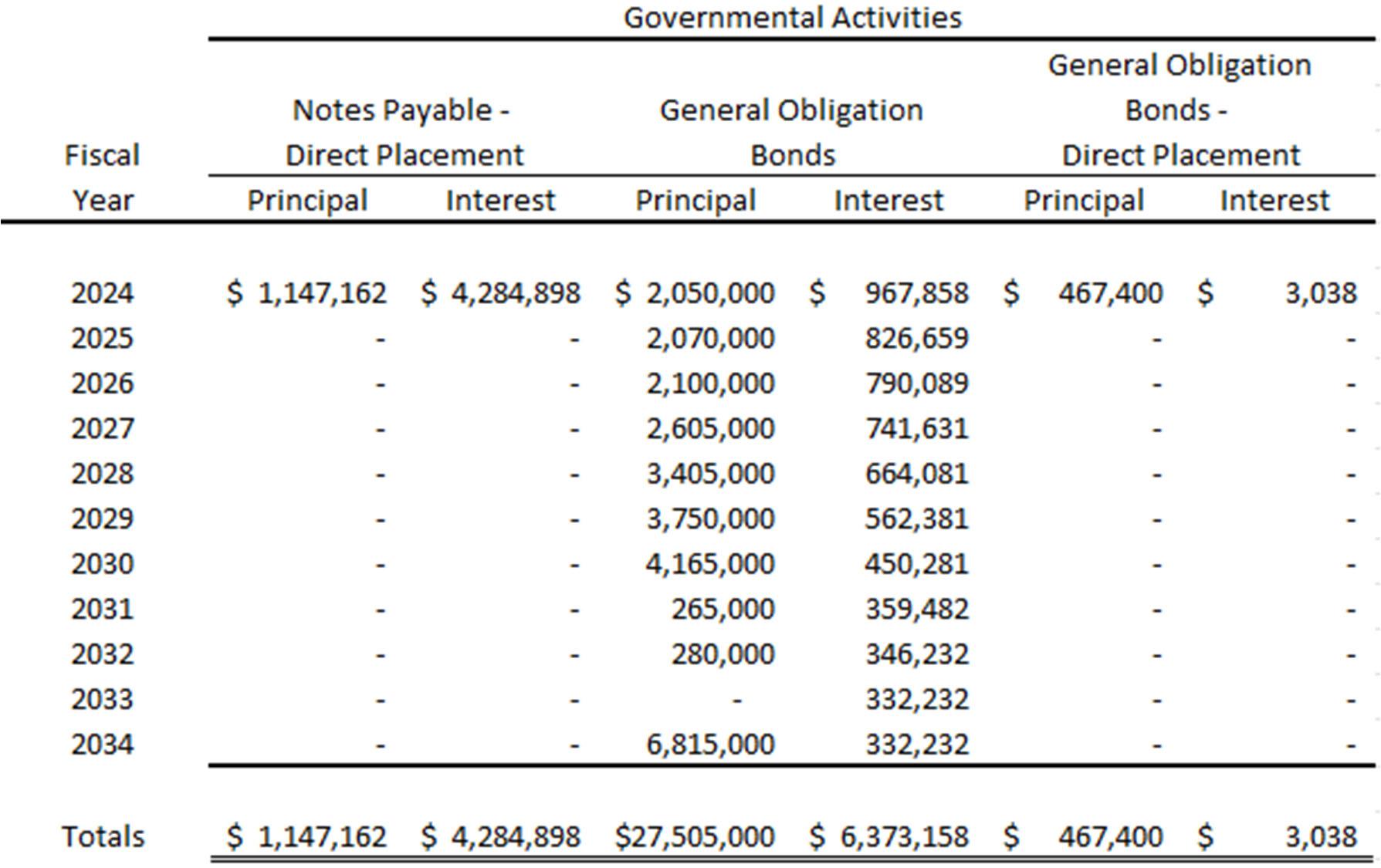 DECEMBER 31, 2023 CURRENT AND LONG-TERM PRINCIPAL AND INTEREST REQUIREMENTS
