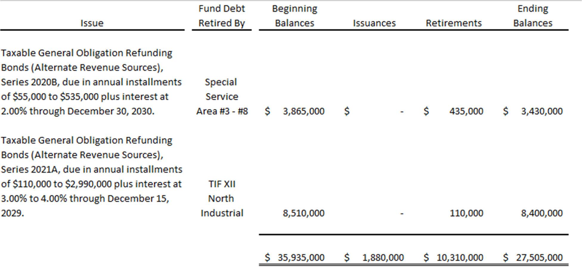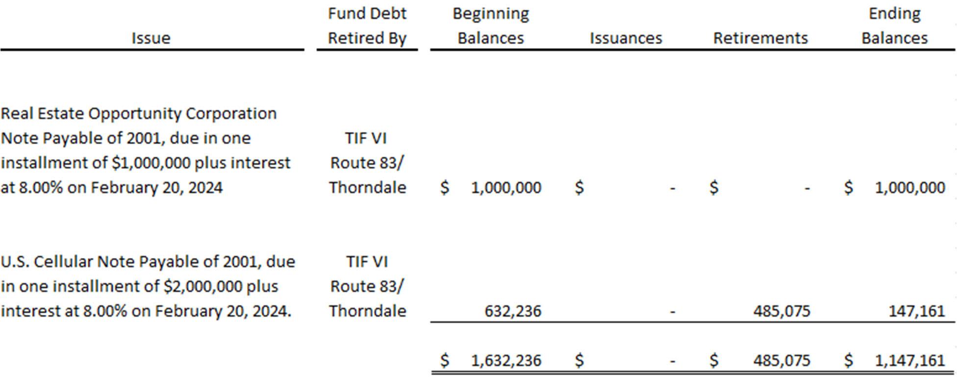 Note: Details regarding the Village's outstanding debt can be found in the notes to the financial statements. Does not include TIF or Special Assessment debt, which is not a Village obligation.