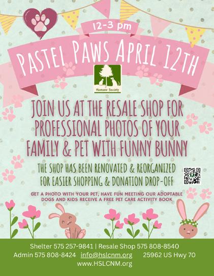 The Humane Society of Lincoln County is hosting their Annual Pastel Paws event at the Humane Society Resale Shop on April 12, 2025, from 12:00 PM – 3:00 PM. This free community event allows families and pets to have professional photos taken with Funny Bunny. At this event, community members will also be able to meet adoptable dogs, and kids will receive a free pet care activity book.