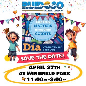 The Ruidoso Public Library presents its 3rd Annual DiaChildren’s Day/Book Day Celebration! There will be free books, activities, entertainment, and local information about kids’ summer activities and resources.