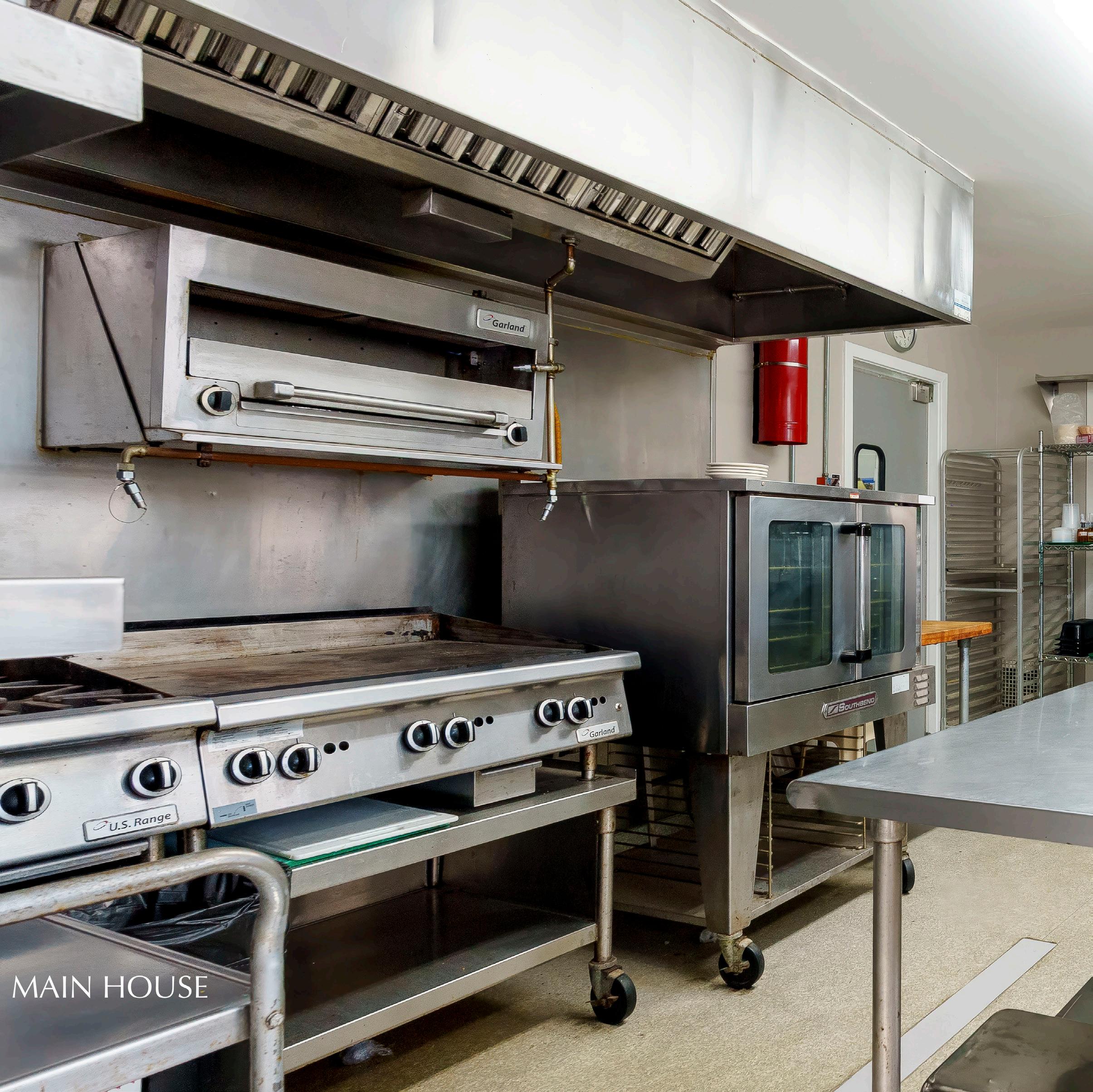 A lush, entry courtyard is a tranquil entry. Currently serving as the heart of the campus, having preserved the exquisite architectural character, the Main House is home to adaptable rooms and offices, a commercial kitchen, dining, terraces, fireplaces, and a basement ideal for an impressive wine cellar. In what was Fleischmann’s Trophy Room, original wood detailing, beamed ceilings, a fireplace, and generous interior volume beckons large-scale entertaining opening to an expansive terrace, vast lawns, and garden views.