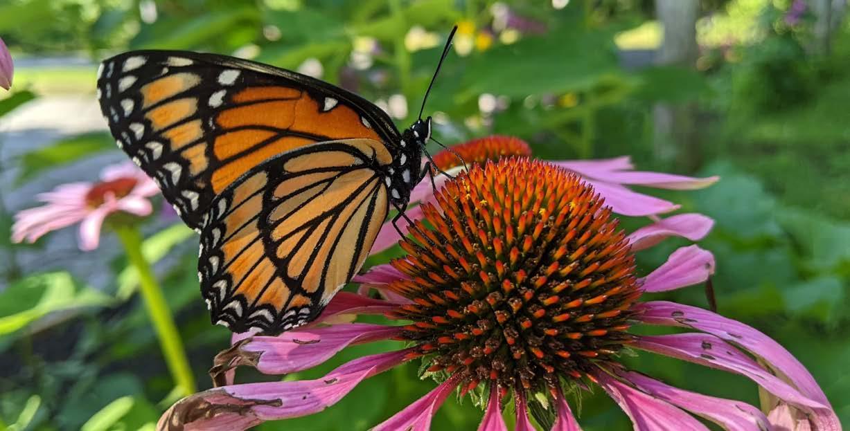 The more host plants that you can incorporate into your garden means you are providing high pollinator value and helps slow extinction in a changing climate. Providing better access to these plants also means they don’t have to venture further out and away from their burrows or nesting sites. Imagine walking for 4 hours or more to a grocery store. That’s what it feels like for most bees & butterflies in our area. In Ontario, we have around 400 native bees and more than 100 butterflies that call home to varying habitat needs across the province. Native bees are often smaller in size and aren’t equipped with stingers so there’s definitely no threat of being stung. In fact, most bee stings are likely