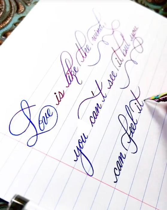 The ink slowly changed colour to a dark rich blue as the ink dried, leaving behind a beautiful quote in cursive at the end of the two minute video.