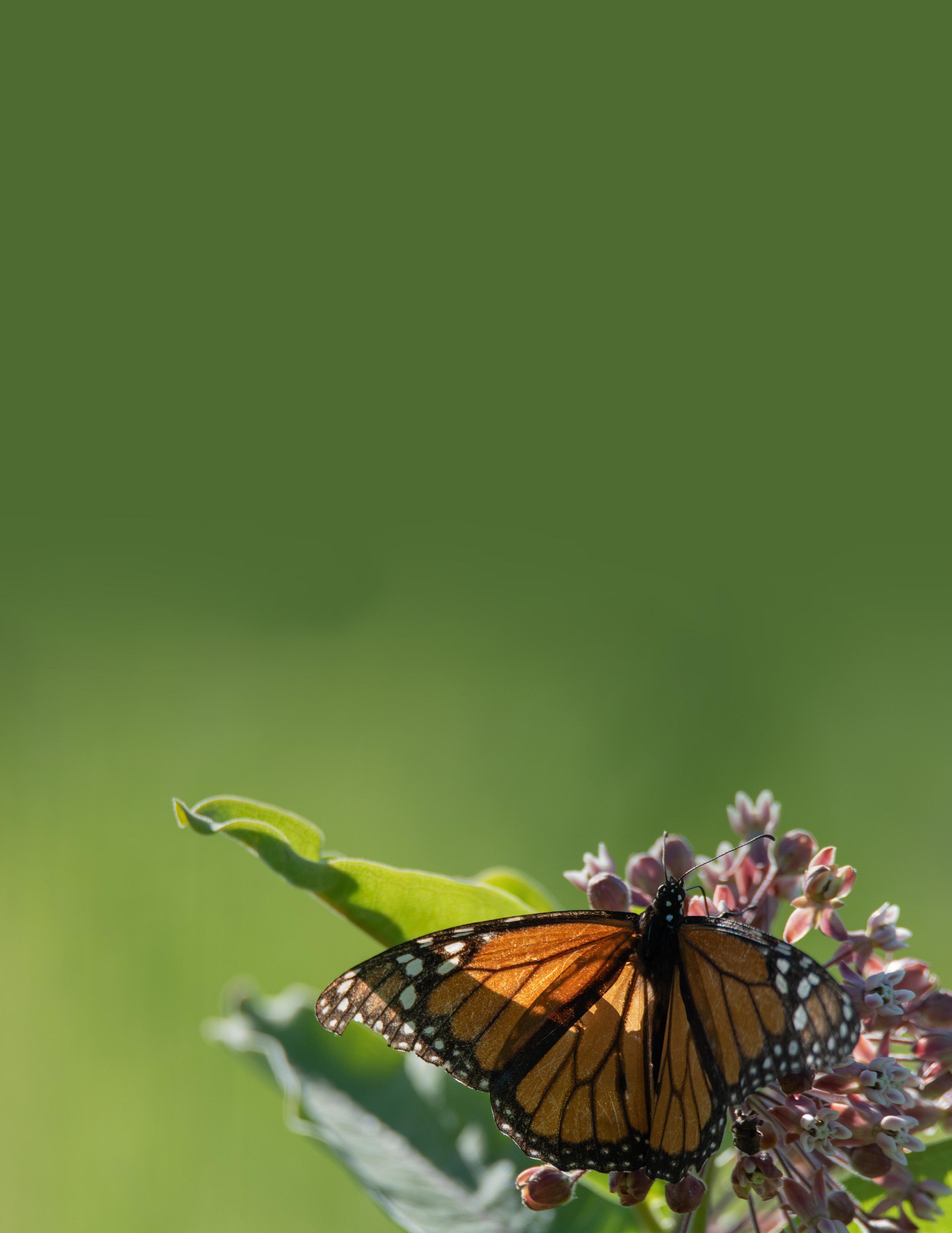 Courtney Baker is Office and Acquisition Coordinator at The Couchiching Conservancy, a local land trust dedicated to protecting nature for future generations. Photo by Toby Rowland. An endangered monarch butterfly enjoying its milkweed habitat.Publishers
