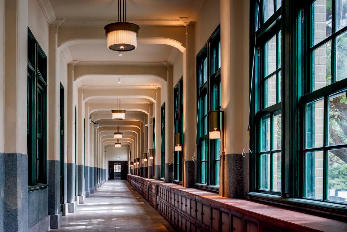 翻新的第一步,是去除多年來校方為了使用需求而在 建築上添加的遮雨棚、附掛物等,「我們覺得,『老 屋新生』應該是不要做太多的破壞,而是讓建築物本 體的美麗能夠還原。」
