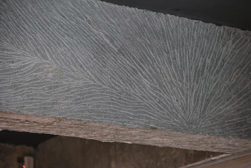 戰後,隨著鋼筋水泥新式建築興起,採石業因而式 微。1970 年代,唭哩岸石的部分產地被徵收為陽明大 學校地,也正是這棟建築的所在地。「在室內大廳, 我們使用了大量的石材,重現唭哩岸石的樣貌與意 象。」為了在時間上也連結地方故事,許志維團隊將 室內以大量石材構築,讓人一進入便感受到空間的明 確主題。