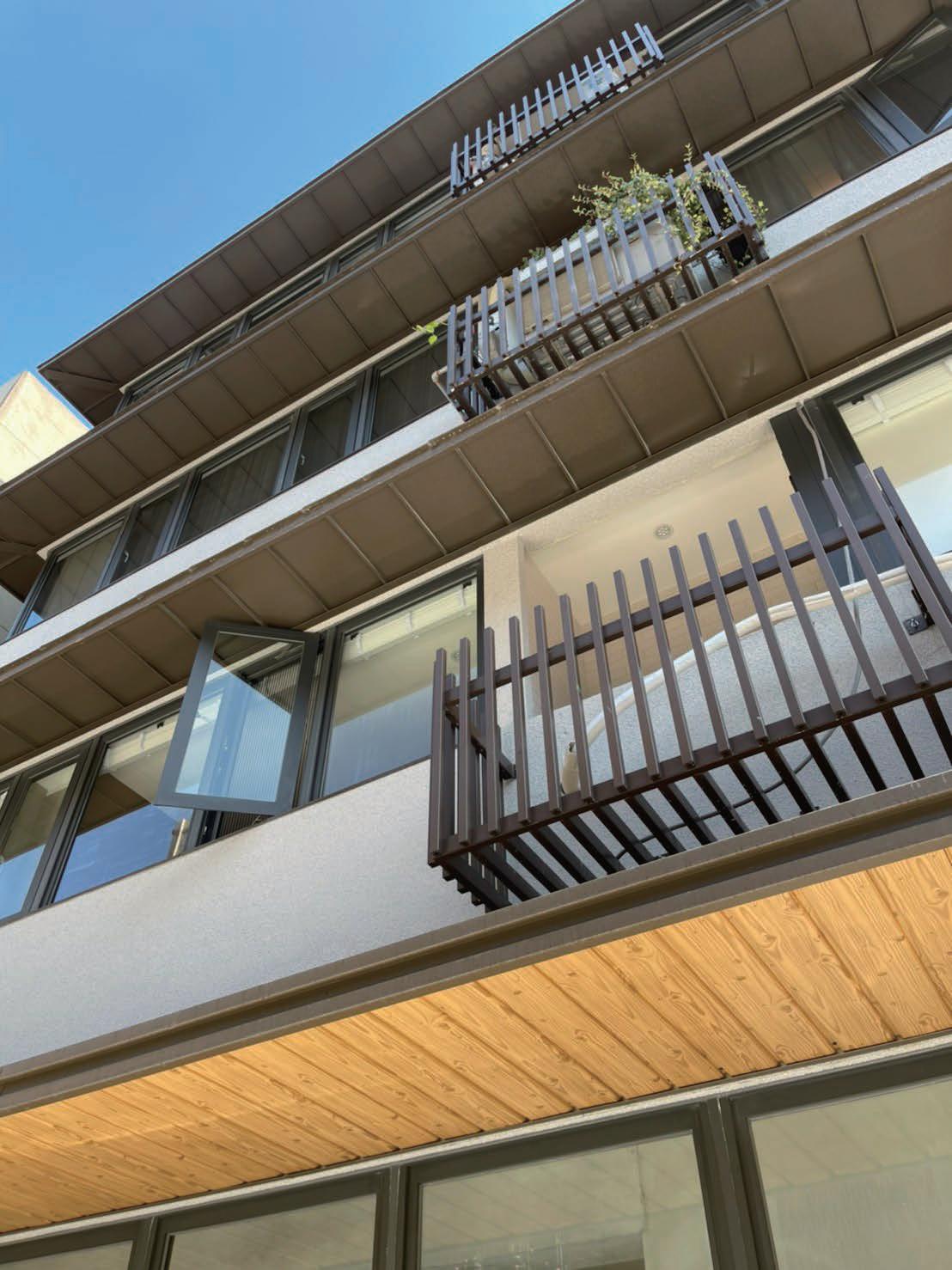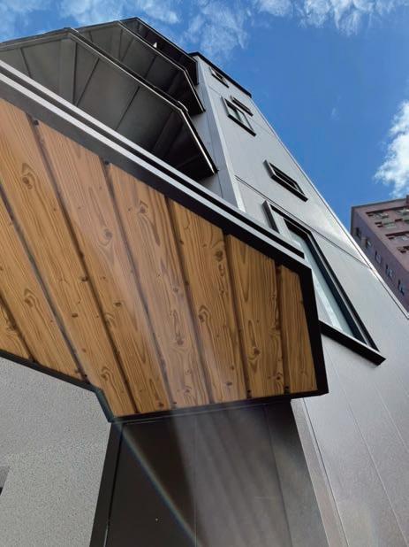 增建的電梯外牆選用了德國皮紋氧 立面改造與