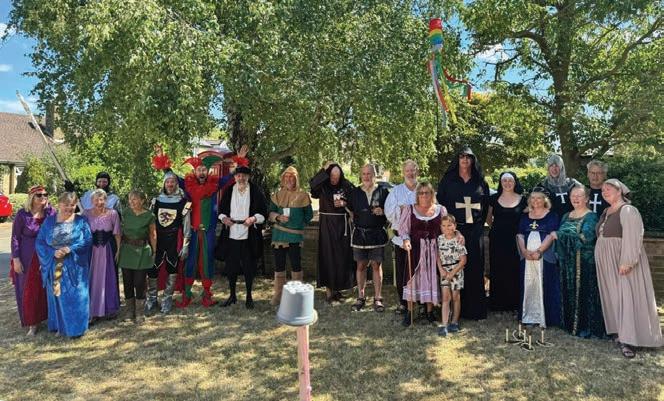 On 28th June the village gathered at the Black Barn for a Medieval banquet to celebrate the 800th birthday of Etton church. Our resident Aussie, Troy, masterminded the preparation and cooking of the delicious Pork shoulder, kindly donated by Grasmere Farm. The pork was served with baked potatoes, salads, stuffing and apple sauce all prepared by Etton villagers. Beer, wine and mead were available all afternoon which probably explains why the Hobby Horse Jousting went down so well! Debs painted a beautiful view of the Church for the pin the Cockerel to the spire competition. Andrew gave a short talk on the history of Etton and we had a brilliant quiz and raffle organised by Jo and Steve. Matt, our other resident Aussie, dressed up as a jester and serenaded us with wonderful songs. A fabulous fun afternoon