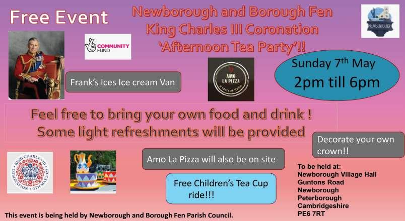 Hopefully by now you will have received your invitation to join the village picnic to celebrate the Coronation of our new King, Charles III. The event is being held on Sunday 7 May, at the Black Barn, between 2pm and 5pm with live streaming of the Coronation concert, celebration cake, a right Royal quiz and pin the crown on the King!