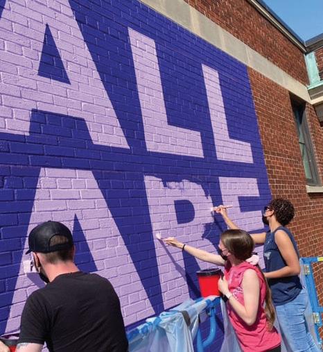 Gerard Place wanted to take advantage of a large, nondescript wall on its building that faced Bailey Avenue. Its requirements were short, but specific. Include its logo and use the phrase “all are welcome” along with the core mission words: compassion, reverence, integrity, and collaboration. The pandemic delayed the project, but it was completed in 2021 with the assistance of three students: juniors, Nick Ellis, '21, and Kelsey Sikora, '23, and a recent Villa Maria graduate with a BFA in integrated arts and a minor in business, Shanel Kerekes, '19, who was a senior when the project began two years prior. Gerard Place was so pleased with the final mural, the organization hired Kerekes to helm a second mural.