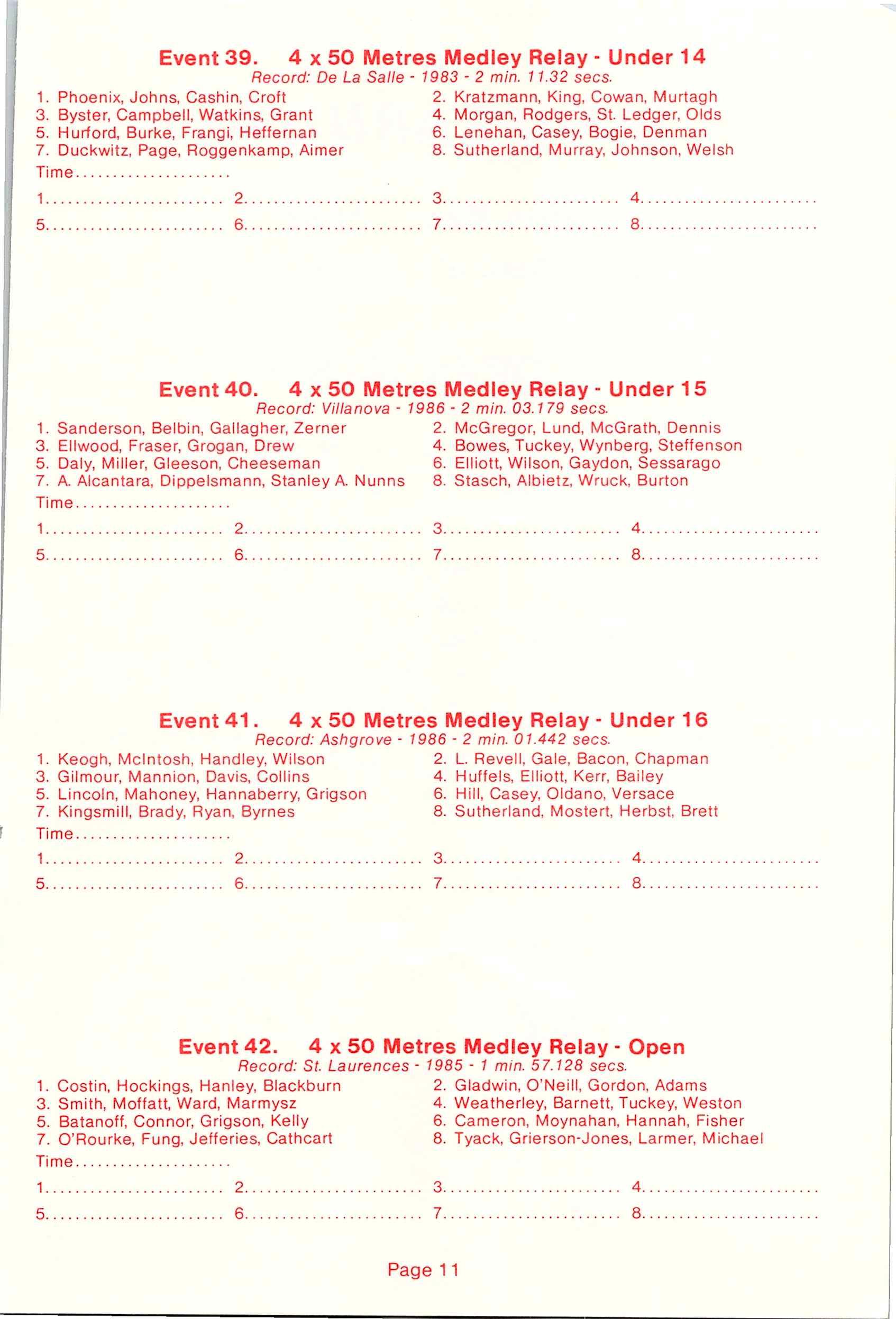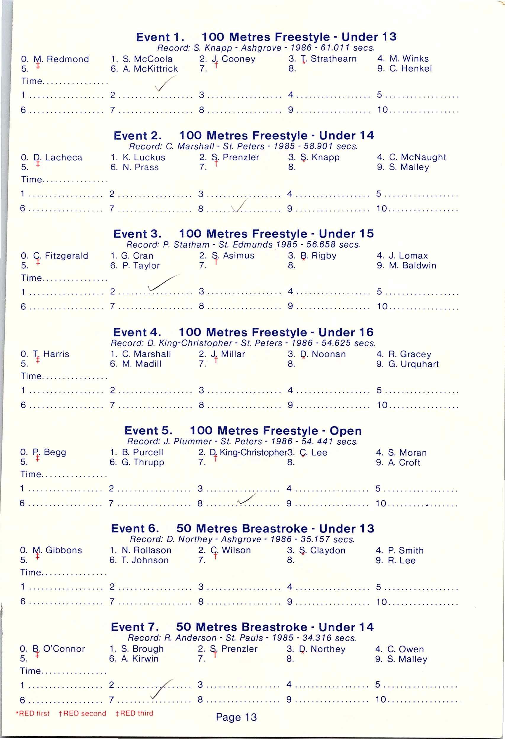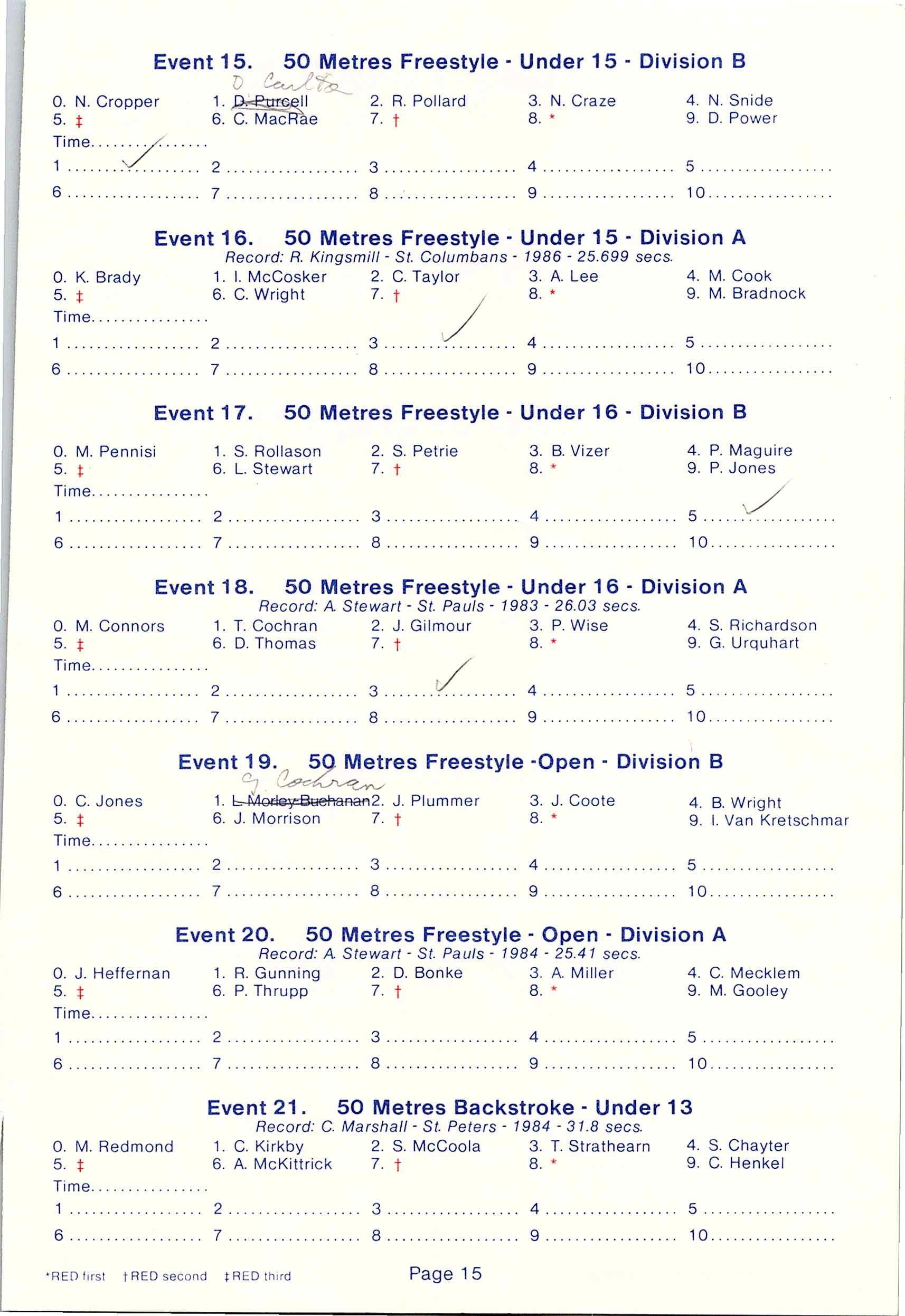 The Associated Schools : 35th Swimming Carnival : 20th March 1987