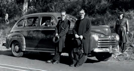 At the front of the car are Fathers O’Donnell and Mahoney, with Father Larkin in the car, and Brother Gregory behind. Taken early October, 1947.