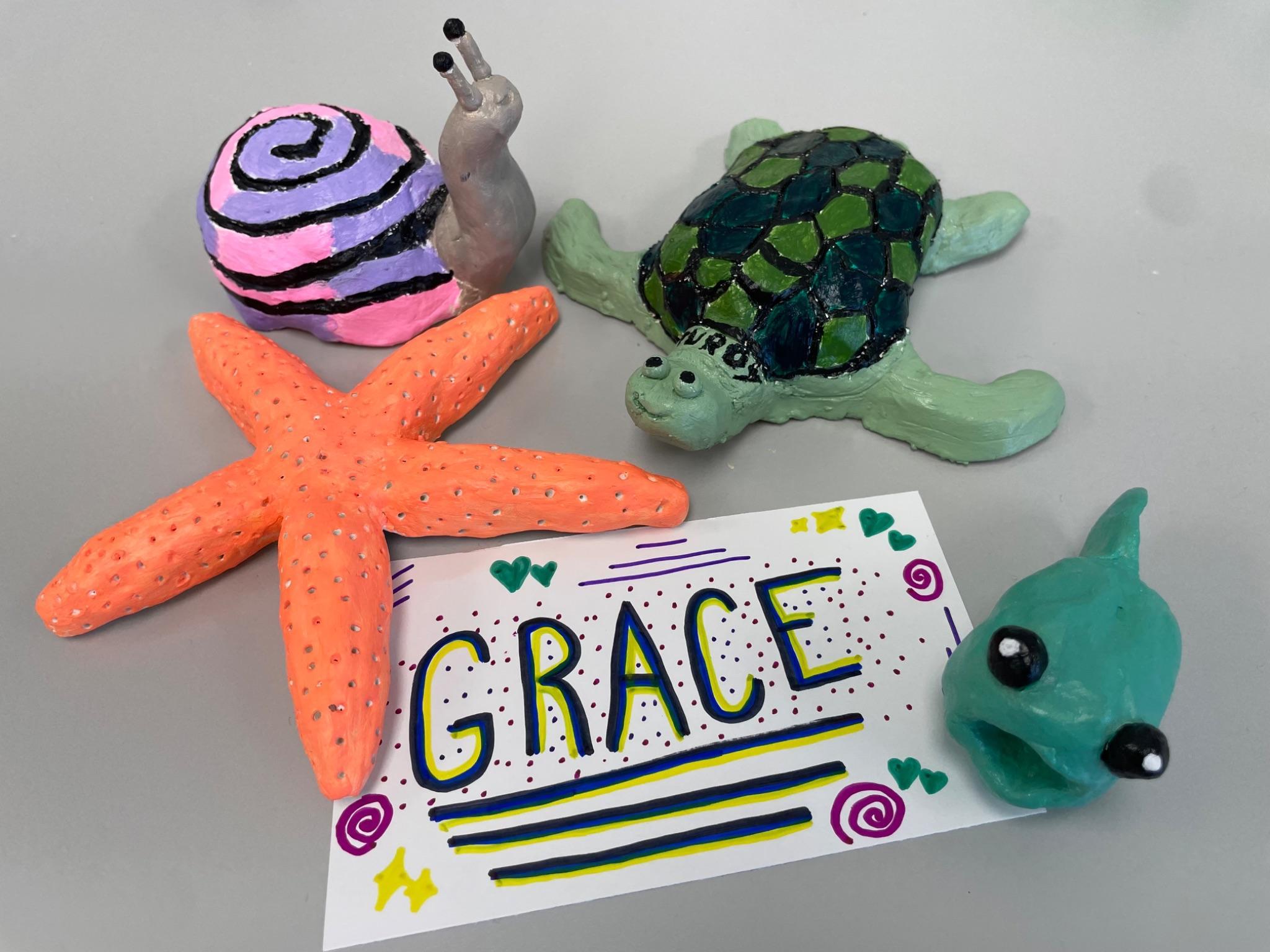 Freshman created adorable sea creaturesouto airdryclay ortheir firstprojecto theyear.Thisallowed them to “dive” into their ocean theme and served as an ice breaker orthefirstparto theyear.
