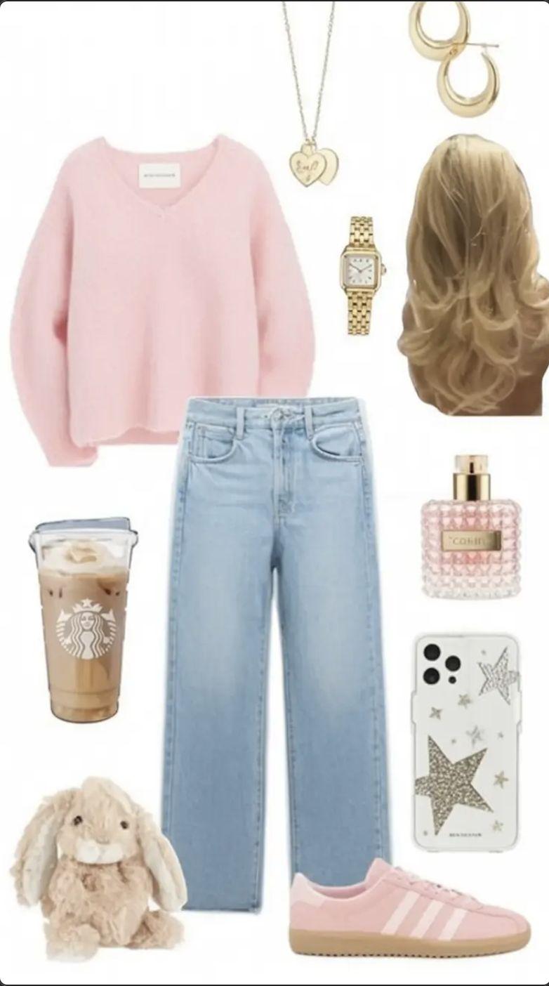 Your all outfits do not have to be centered around browns and loomy colors. Add a hint o pink to so ten and bri hten the deep, dark colors. A so t pink sweater combined with strai ht le jeans or low rise, wide le , ba y jeans is com y but stylish. Maybe add a pair o pink Adidas Gazelle sneakers,a small old bandwatch, old hoop earrin s, and a lon old pendant necklace, and you have ot yoursel the comfiest, yet cutest, outfit! The irly, pink hues can be complementedbyaddin ed y oldhoopsand anele antnecklace,finishin o thefitwitha cool pair o pink Adidas. Complete the look with a Starbucks Pumpkin Spice Latte in your hand, and you are set or a cool all day. Another one o my avorite looks is this all outfit(picturedontheri ht)thatcantransition intothewinterseason.