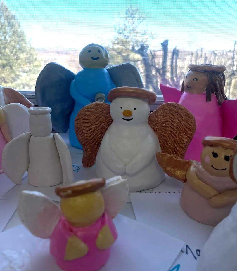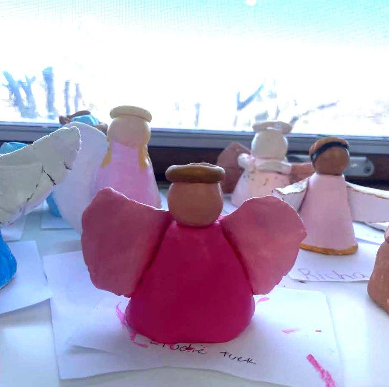 angels and self-portraits by grades 7, 8, and 9 Working with