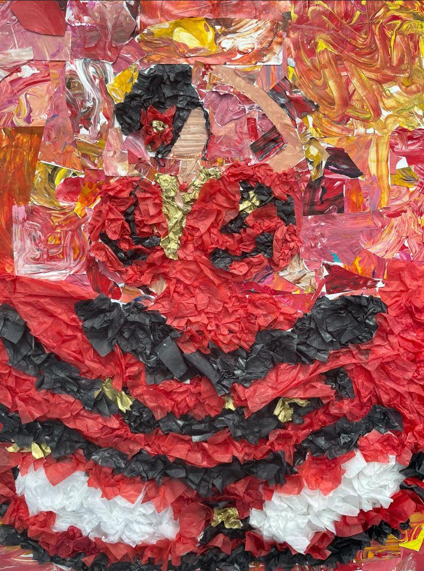 Avery Poruczynski ’25 won an honorable mention or her drawin , “Technolo yTrap,”andasilveraward oesto AnnieRionda’27 orhermixedmediapiece, “Gloria.”