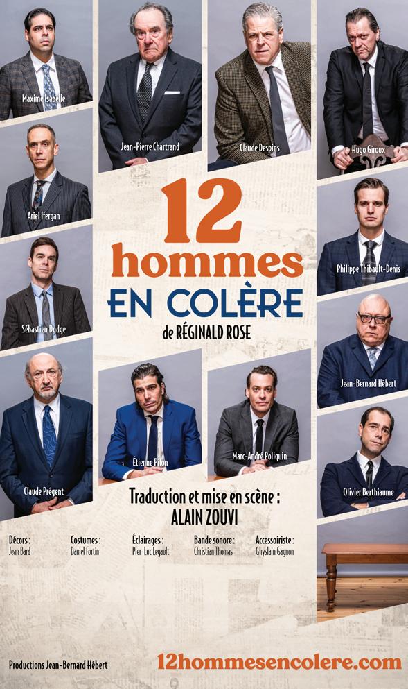 Un jury de 12 hommes doit décider du sort d’un jeune homme accusé d’homicide. La preuve et les faits réunis contre lui sont accablants. Le verdict semble évident. Pourtant, un membre du jury n’est pas convaincu et a le courage et la détermination de prendre position, d’aller au-delà des apparences et des préjugés. La pièce 12 HOMMES EN COLÈRE est remplie d’humanité, profondément actuelle, et les travers de la bêtise humaine y sont omniprésents. Un suspense enlevant qui vous tiendra en haleine du début à la fin.
