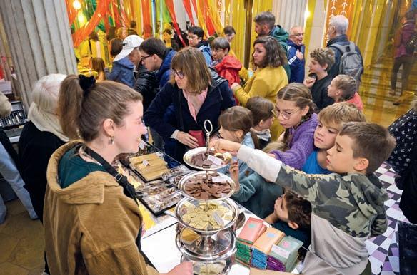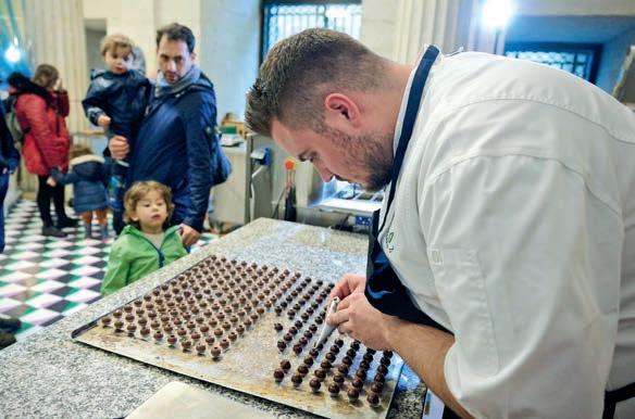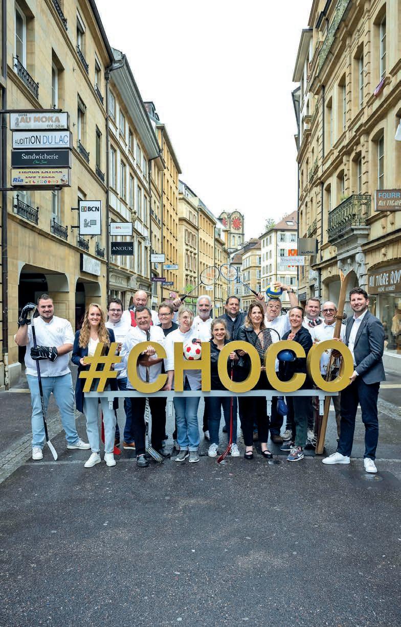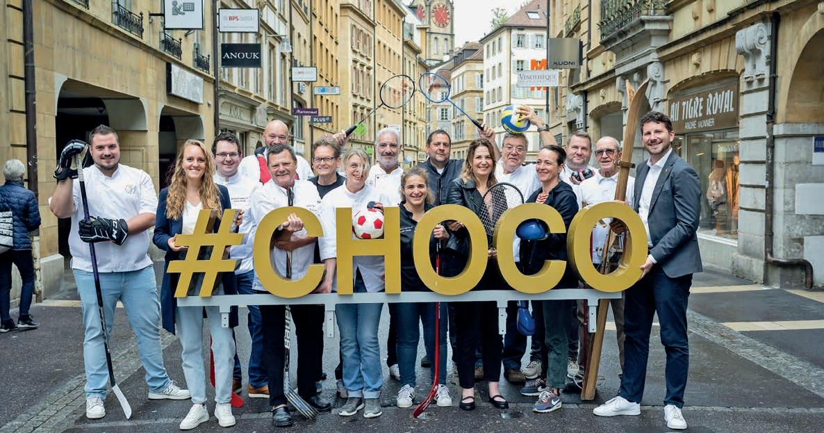 qui chapeaute l’événement en collaboration étroite avec la Ville. Durant toute une semaine, le Péristyle se transformera en fabrique de chocolat. Les confiseurs et confiseuses partenaires proposeront démonstrations et dégustations en lien avec la thématique du sport. Des activités 100% gourmandes, mariant ces deux univers, attendent le public à l’Hôtel de Ville, mais également au Jardin botanique, dans les théâtres ou encore dans les boutiques de la ville et du canton. Grande nouveauté : les visiteurs pourront jouer au jury et décerner une médaille d’or à la meilleure des neuf tru es chocolatées en compétition (voir encadré).