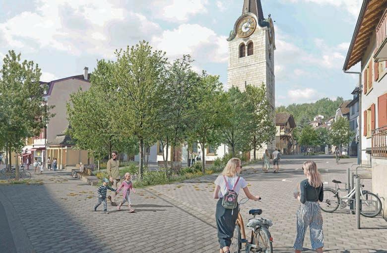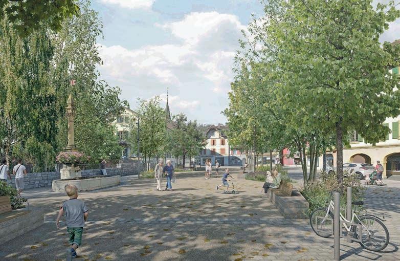 A la suite des travaux d’infrastructures, le réaménagement urbanistique ambitionne de faire de Peseux une centralité majeure de la commune. La place de la Fontaine aura une partie sur laquelle il sera possible de circuler au régime de zone de rencontre (20 km/h). L’autre partie consistera en un espace piétonnier revêtu de chaille stabilisée et bordé de pavés en grès suisse des Alpes. De petits canaux d’irrigation permettront de diriger les eaux pluviales vers les espaces de végétation. En tout, quelque 60 arbres seront plantés entre le sud et le nord de la Grand-Rue, ainsi que du mobilier urbain placé de sorte à bénéficier d’un maximum d’ombrage. Du côté de la rue du Temple, un nouvel écrin de verdure rappellera le jardin historique du temple du Peseux. « Nous sommes fiers de donner le premier coup de pioche pour cette réalisation qui rendra à Peseux la beauté de son centre historique et permettra aux habitant-e-s de se retrouver sur une nouvelle place de village; ce morceau de ville qui respirera à nouveau illustre notre projet de territoire et le futur Plan d’aménagement local, et s’inscrit pleinement dans le développement annoncé des communes parties à notre fusion », a souligné la conseillère communale Violaine Blétry-de Montmollin, responsable du développement territorial. ●
