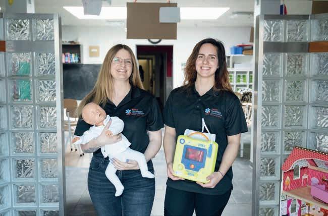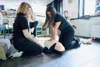 Chaque membre des équipes éducatives a pu s’entraîner sur des mannequins de di érentes corpulences. « Si on est deux, on peut ventiler la personne inconsciente et si nous sommes trois ou plus, on peut chercher un défibrillateur. Géolocalisées, ces machines constituent une excellente aide à la réanimation. Les gens ont peur de s’en servir, mais je les utilise avec des enfants qui n’ont aucune peine à se débrouiller. Il su t de suivre les instructions ».