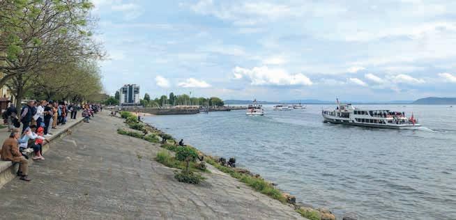 Neuf. Ils étaient neuf, les bateaux qui promenaient dimanche leur longue silhouette blanche au large du port de Neuchâtel. La parade navale célébrant le 150e anniversaire de la compagnie de navigation LNM, annulée l’automne dernier en raison de la météo exécrable, a enfin pu avoir lieu. Toutes sirènes dehors, le vapeur Neuchâtel en tête et les plus petiots fermant la marche, les bateaux ont e ectué plusieurs passages, pour le plus grand plaisir tant des personnes qui étaient montées à bord que de celles qui s’étaient massées sur le quai Ostervald. ●