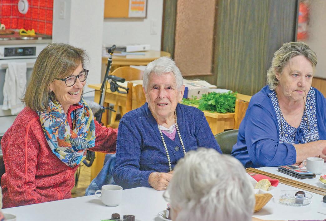La dame au centre, qui a habité durant plusieurs années à la résidence, était heureuse de retrouver ses anciennes voisines, mercredi dernier. PHOTOS BERNARD PYTHON