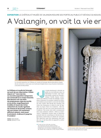 Le Château et musée de Valangin est sorti de son hibernation. Visible depuis le 1er mars dernier, sa nouvelle exposition temporaire est consacrée à la couleur blanche. Elle donne à voir une série de somptueuses robes de mariée et de soirée, magnifiquement brodées et issues des riches collections du musée. Symbole de richesse et de pureté, le blanc est une couleur non seulement difficile à obtenir, mais aussi à entretenir. A découvrir jusqu’au 31 octobre ! TEXTES : ANNE KYBOURG PHOTOS: BERNARD PYTHON