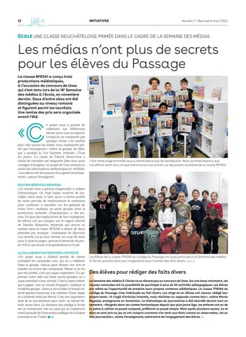 ÉCOLE UNE CLASSE NEUCHÂTELOISE PRIMÉE DANS LE CADRE DE LA SEMAINE DES MÉDIAS